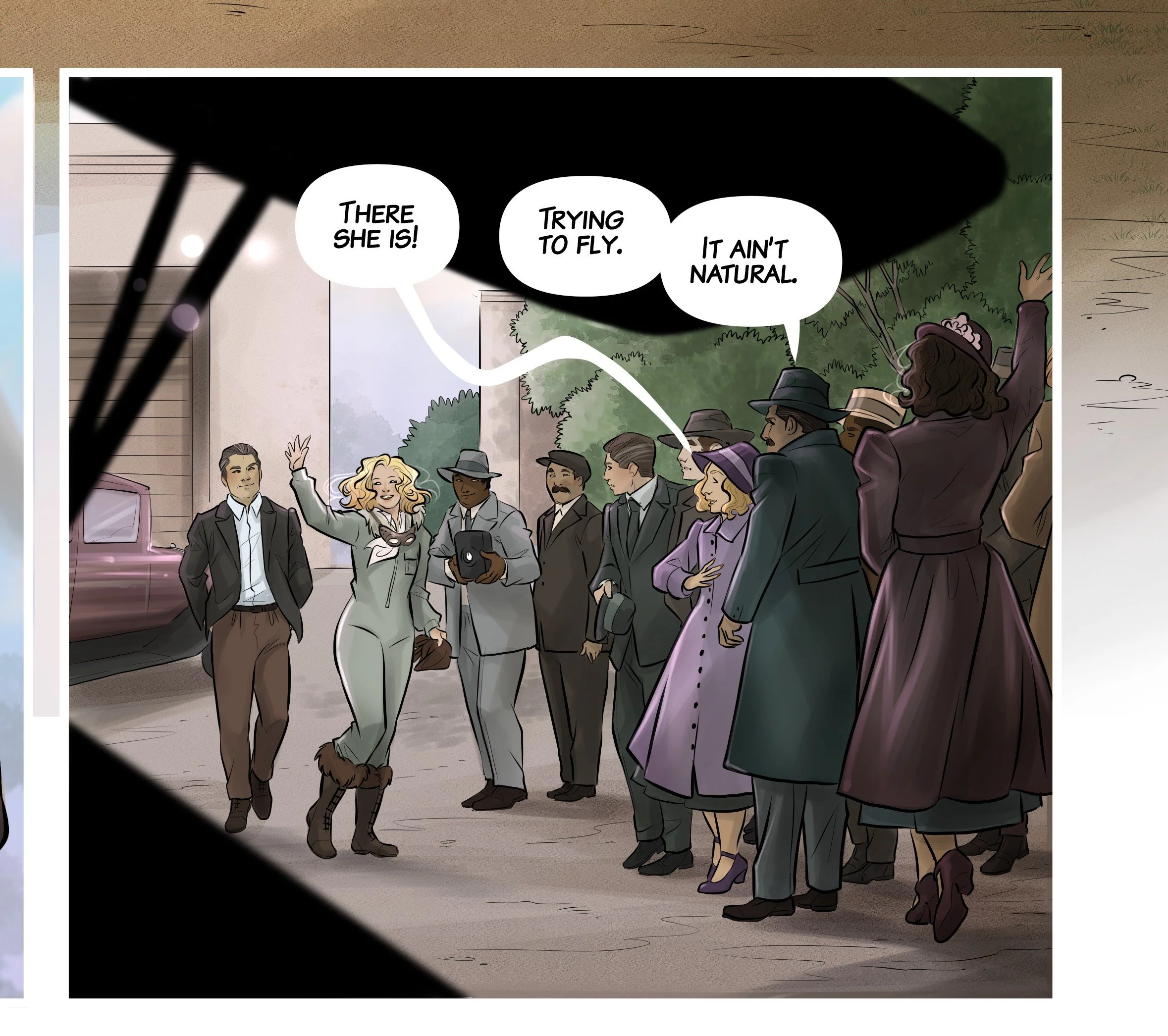Here’s a panel from my YA/adult graphic novel. My agent is contacting publishers, looking for a good fit to launch this baby into the publishing world.